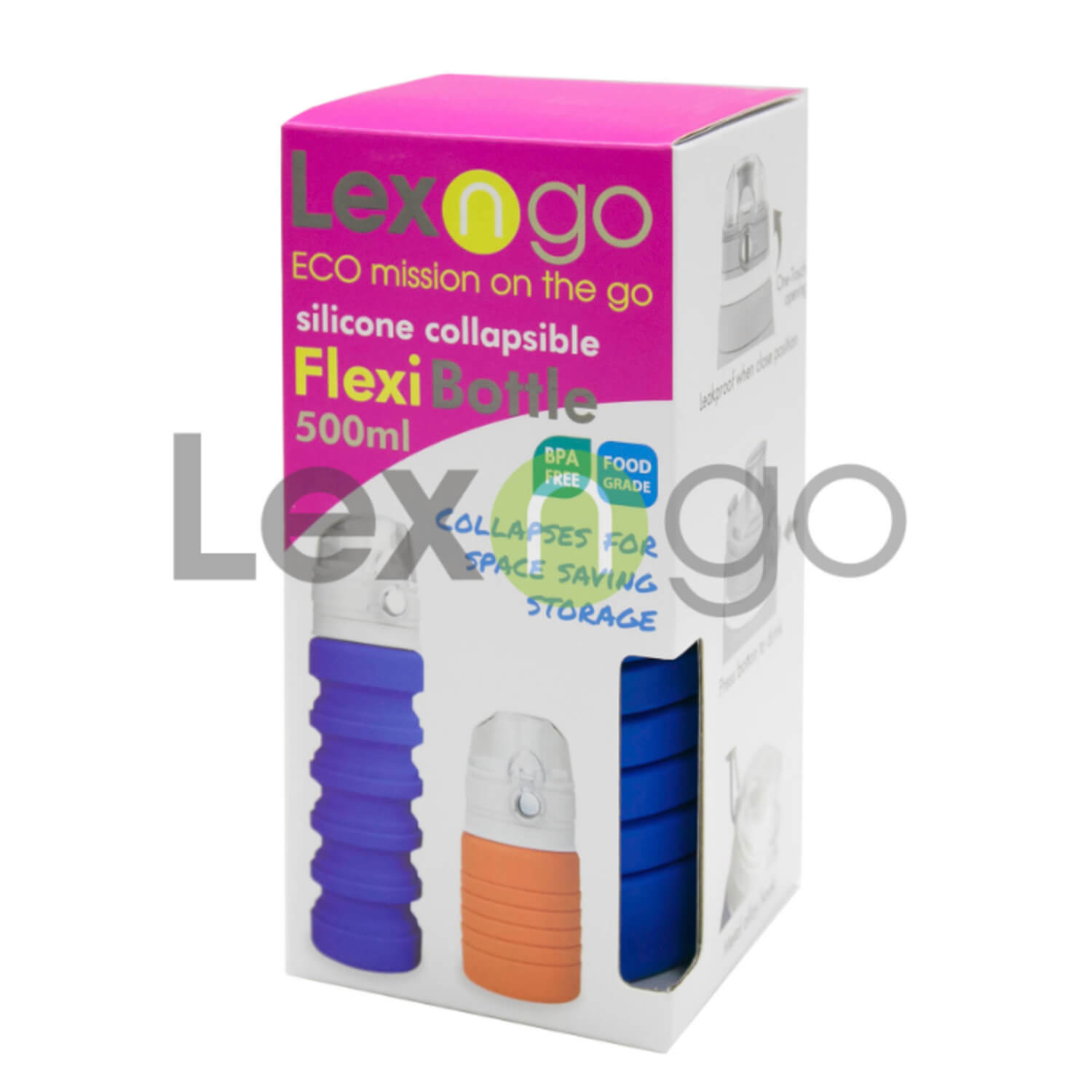 Perfecto para almacenar bebidas mientras viaja o practica su deporte preferido. A prueba de derrames. La botella flexible de silicona se puede plegar para almacenar. Capacidad: 500 ml o 17 fl oz. Material 100% de calidad alimentaria. NO TÓXICO, libre de BPA.